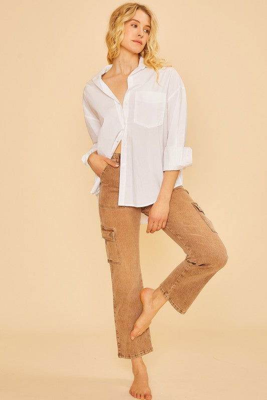 Adjustable Waistband High Rise Baggy Wide Jeans