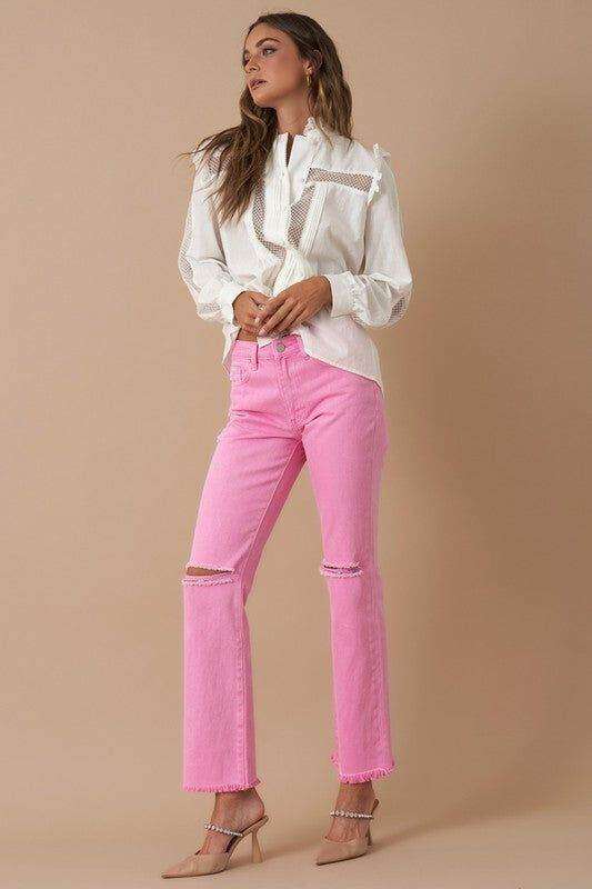 Adjustable Hem Knit Band Wide Leg Jeans